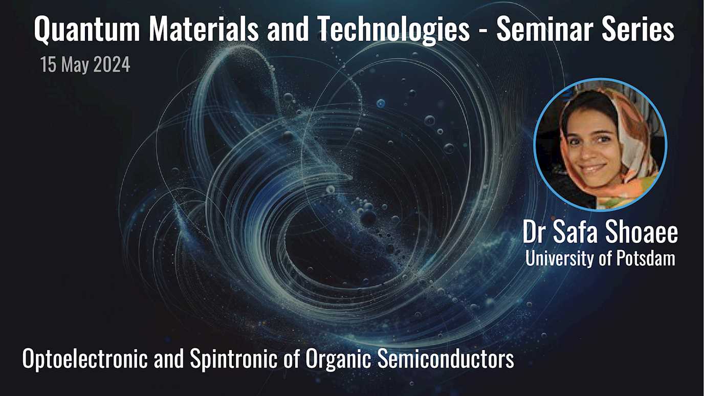 15 May 2024Dr Safa Shoaee will give a talk on Optoelectronic and Spintronic of Organic Semiconductors
